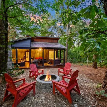 Situated approximately 2 km from Jet Boat Joe's, the 1-bedroom Luxurious 1Br Romantic Cabin In Broken Bow - Sleeps 4, Hot Tub, Fire Pit, Fireplace & Close To Lake features a patio with views of the garden.